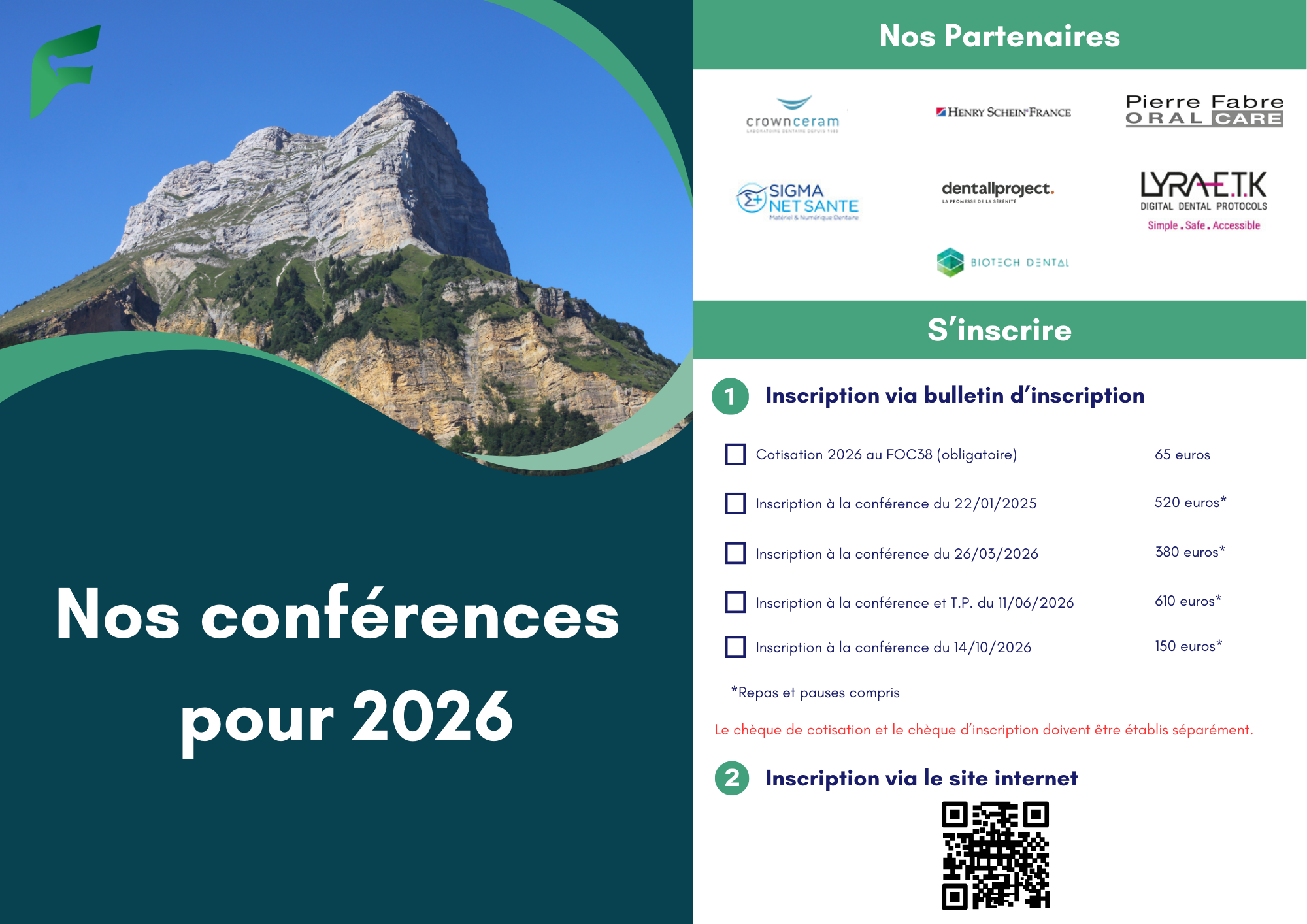 Animée par des professionnels, le FOC 38 est une association loi 1901 totalement indépendante. Elle fait appel à des conférenciers reconnus du domaine bucco-dentaire, en respectant une pluralité des courants de pensée.